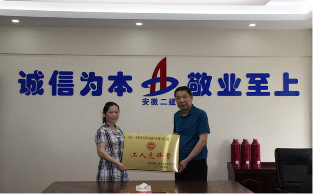6月1日,安徽潤業國際電商產業園商業項目被公司授予“工人先鋒號”稱號,公司工會主席李林為項目授牌。