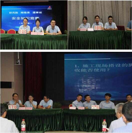 在2019年全國第18個“安全生產月”期間,為更好地促進集團公司廣大職工深入學習掌握行業安全生產相關法律法規及標準規范,認真貫徹落實“安全第一、預防為主、綜合治理”方針,強化“安全為天 生命至上”理念,6月12日下午,在集團公司三樓會議室隆重舉行“防風險、除隱患、遏事故”主題安全知識競賽活動,共25支代表隊參賽,公司安全生產總監曹建,總經理助理、工會副主席蒯家江帶隊參賽。